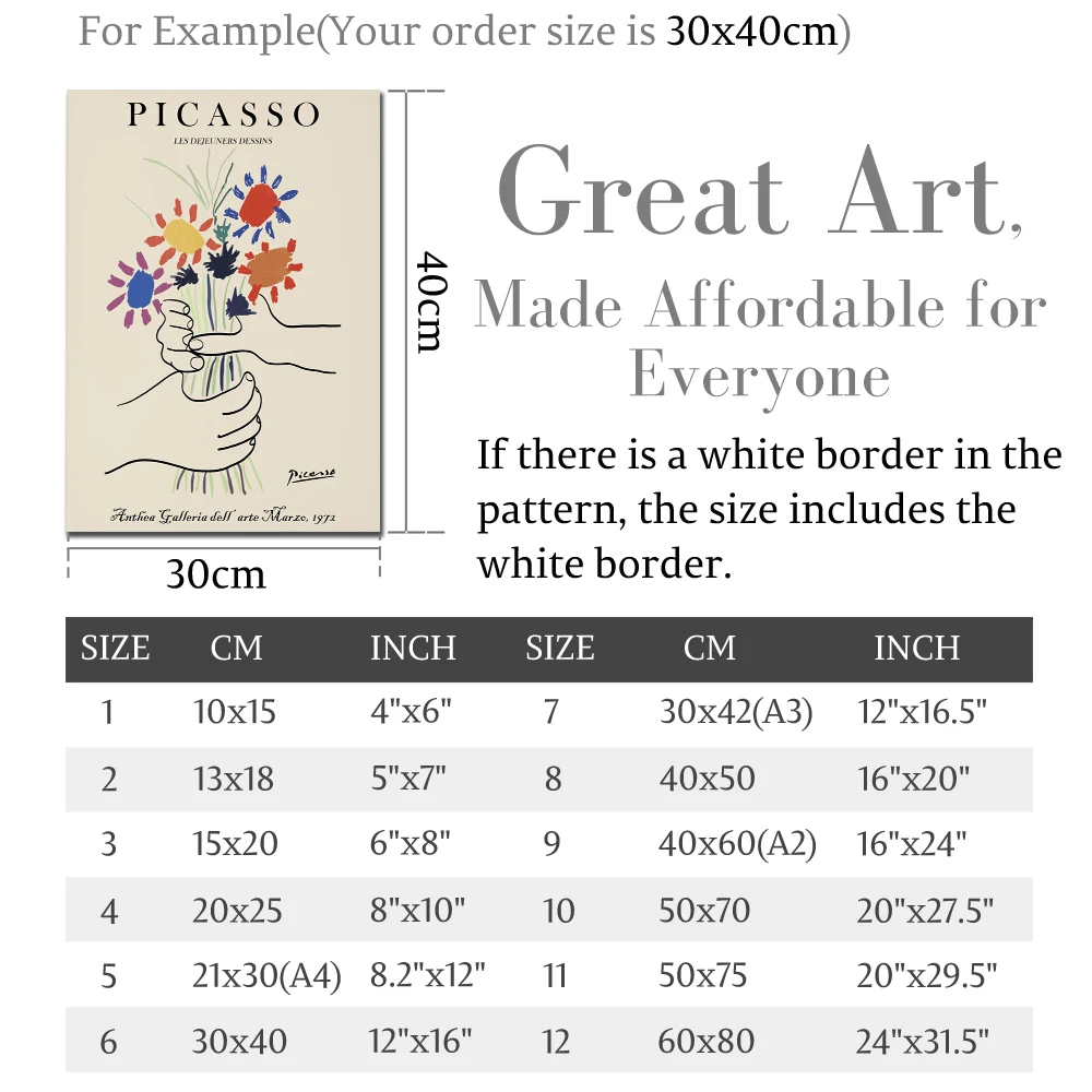 1.It comes a poster only, No Frame,poster has no border.The poster with frame in the picture is used only as a display effect.If you need 3cm whiter border,please leave a message to us.